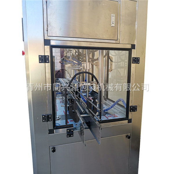 3、小瓶自動(dòng)卡瓶口功能:本機(jī)加上卡口裝置,保證了灌裝小容量(玻璃瓶等)時(shí)瓶口與灌裝嘴的吻合。