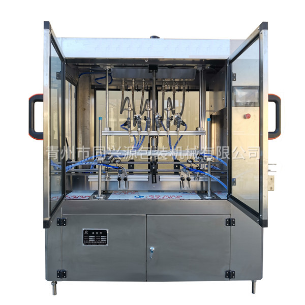 3、采用自流式灌裝原理,防止液體外溢。防滴漏的灌裝頭,保證灌裝過程的清潔衛生。