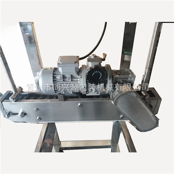 1、該機用不銹鋼鏈板作輸送帶,工作可靠。
