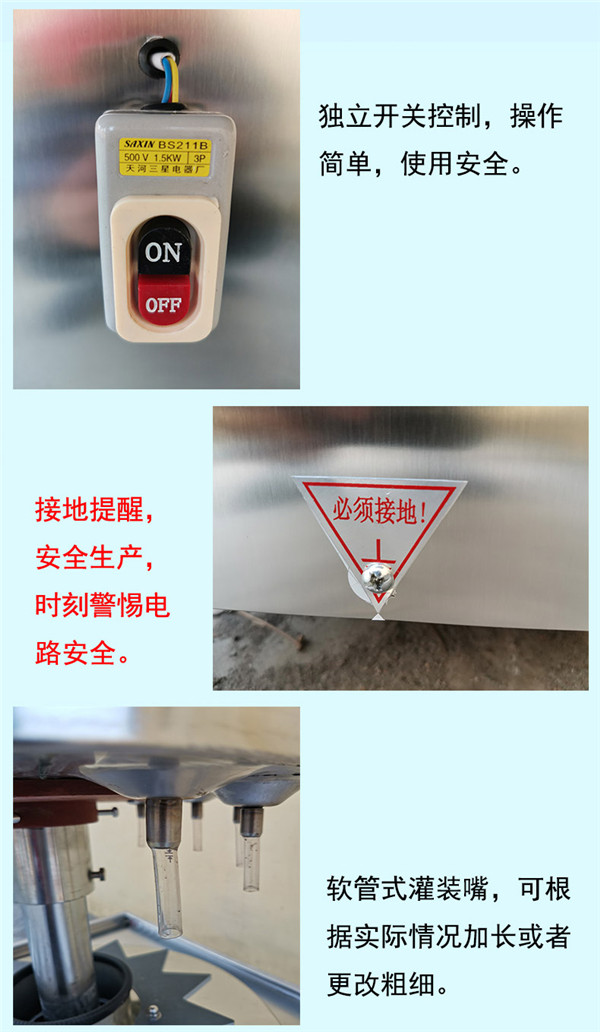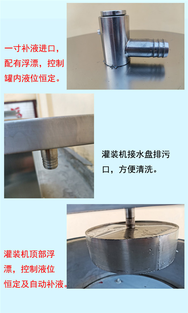 2、凡與被灌裝液體接觸部件、均采用不銹鋼或材料制造,以確保被灌裝液體不受污染,符合食品衛(wèi)生標(biāo)準(zhǔn)。